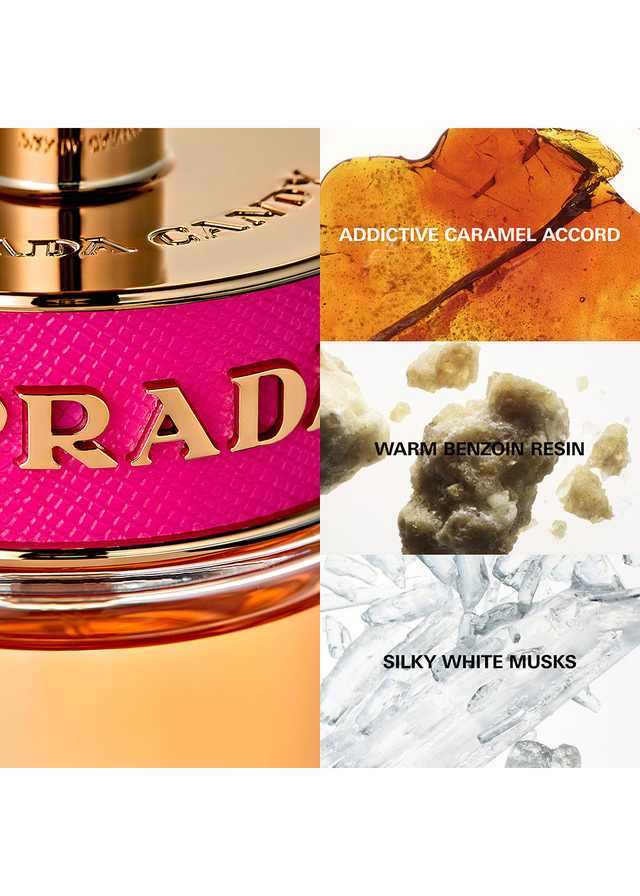 Playful and addictive, Prada Candy Eau de Parfum, is a symbol of captivating femininity. A luxurious, gourmand fragrance, indulging the senses with notes of creamy white musk, intoxicating benzoin and addictive caramel. A sophisticated, seductive, feminine composition. Prada Candy's unique and unforgettable scent fully embodies the Prada woman of today. She is playful, daring, empowered and confident. Enjoy a long-lasting addiction with Prada Candy Eau de Parfum.