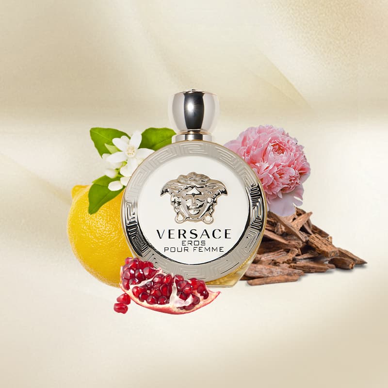 The primal power of a woman captured in a radiant sensual essence Versace Eros Eau de Parfum is bursting with passion. From creative director Donatella Versace Eros is an alchemy of tempting bright and feminine notes. A refined accord of lemon and jasmine exalted by sensual and smooth woods...