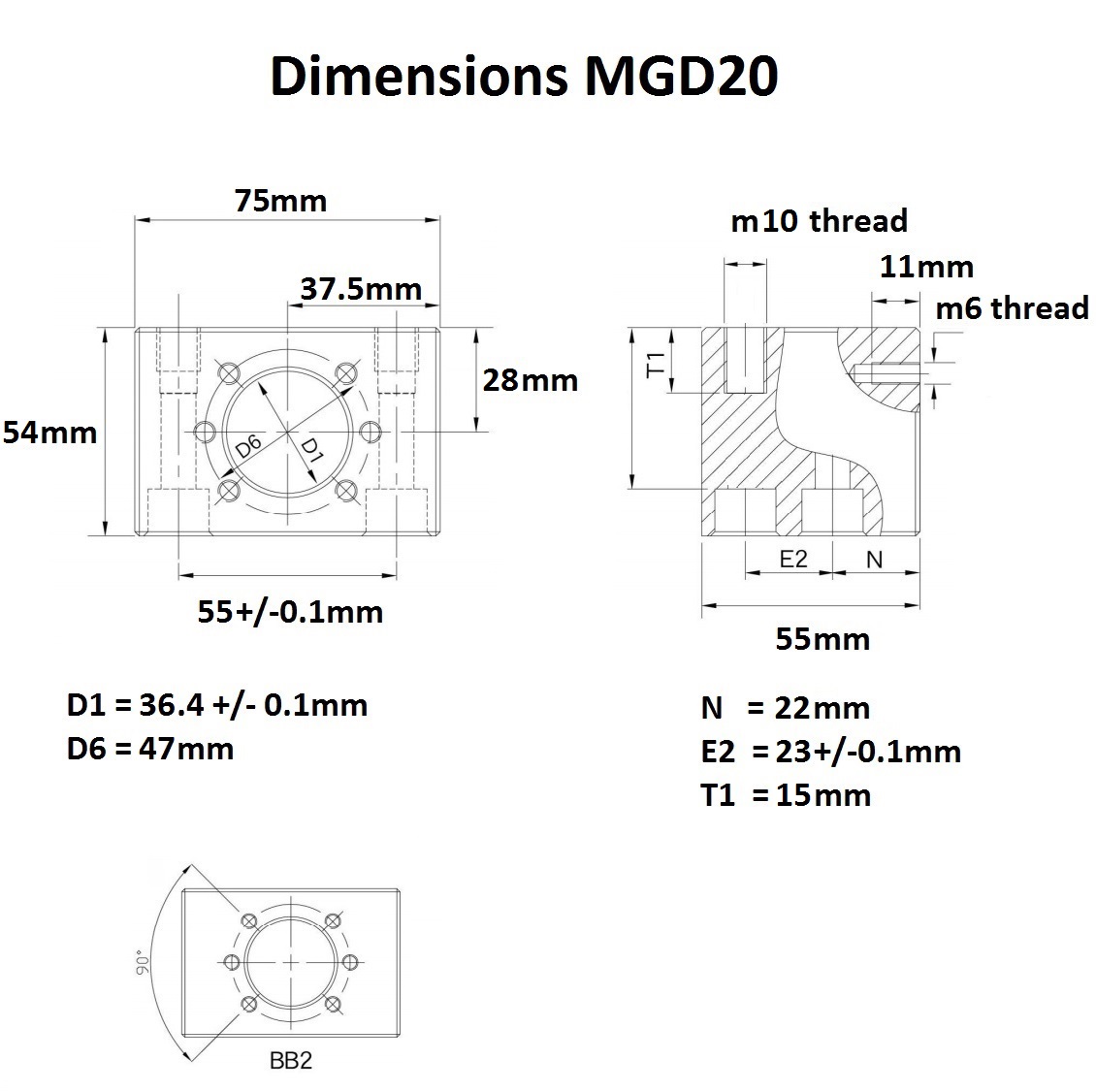 MGD20 NUT HOUSING DSG20 Black Housing Aluminium for 2005,2010 Ball Screw Nut (Inner Dia : 36mm) Type: Ball nut mount bracket housing Apply to: match use SFU2005, 2010 ball nut (Inner Dia : 36mm) Material: Aluminium Model number: SFU2005, 2010 nut housing ![]() |