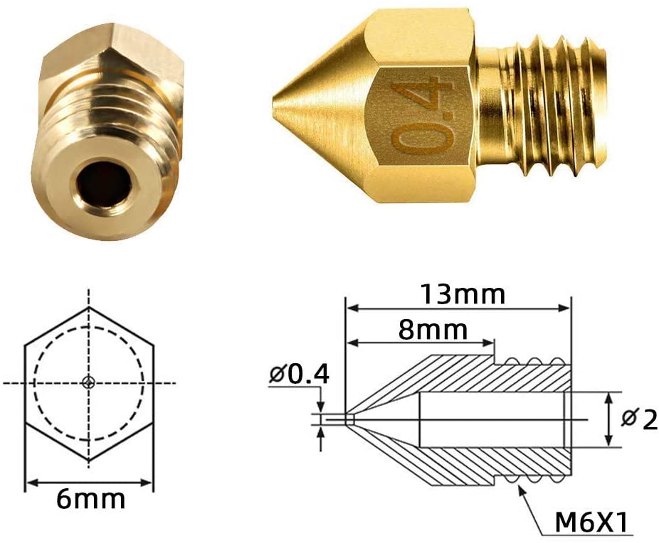 Precise Design: 3D printer nozzles can prevent print head from leakage effectively and produce consistent prints with smooth and glossy polish.Reduce the resistance from the corners and avoid blocking of the filament with rounded chamfer.Easy to identify with engraving the size on each nozzle.