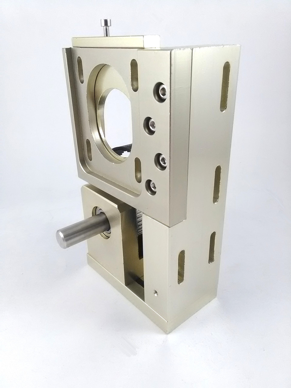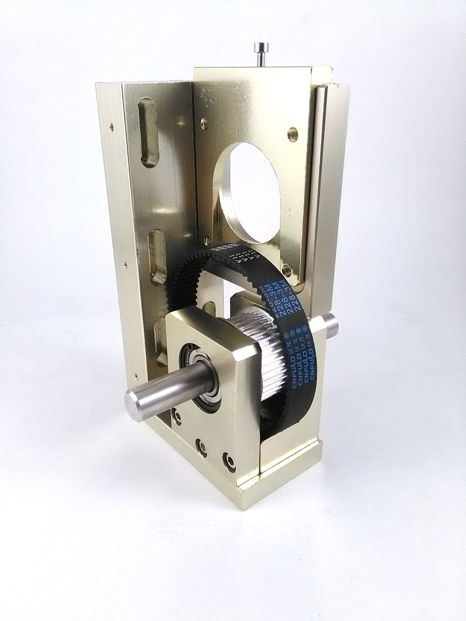 2:1 Reduction Gear box for Y axis. This Y-axis belt driven gear is designed for CO2 Laser Machines. It is a heavy-duty built, the dual-shaft motor mount is ready for use with a Nema 23 (57 series) stepping motor.