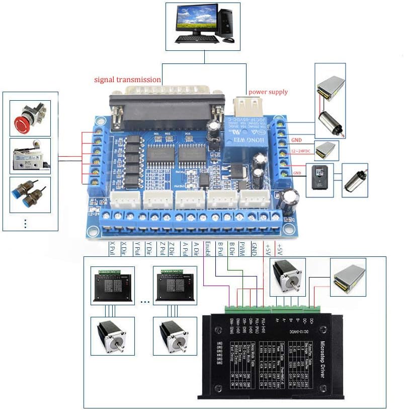 Upgraded 5 Axis CNC Interface Adapter Breakout Board for Stepper Motor Driver Mach3 + USB CableSI666 5 Axis breakout boardpackage :5 Axis breakout board + 5v cable + parallel cable 5 axis CNC Breakout board interface adapter board5 input signal..