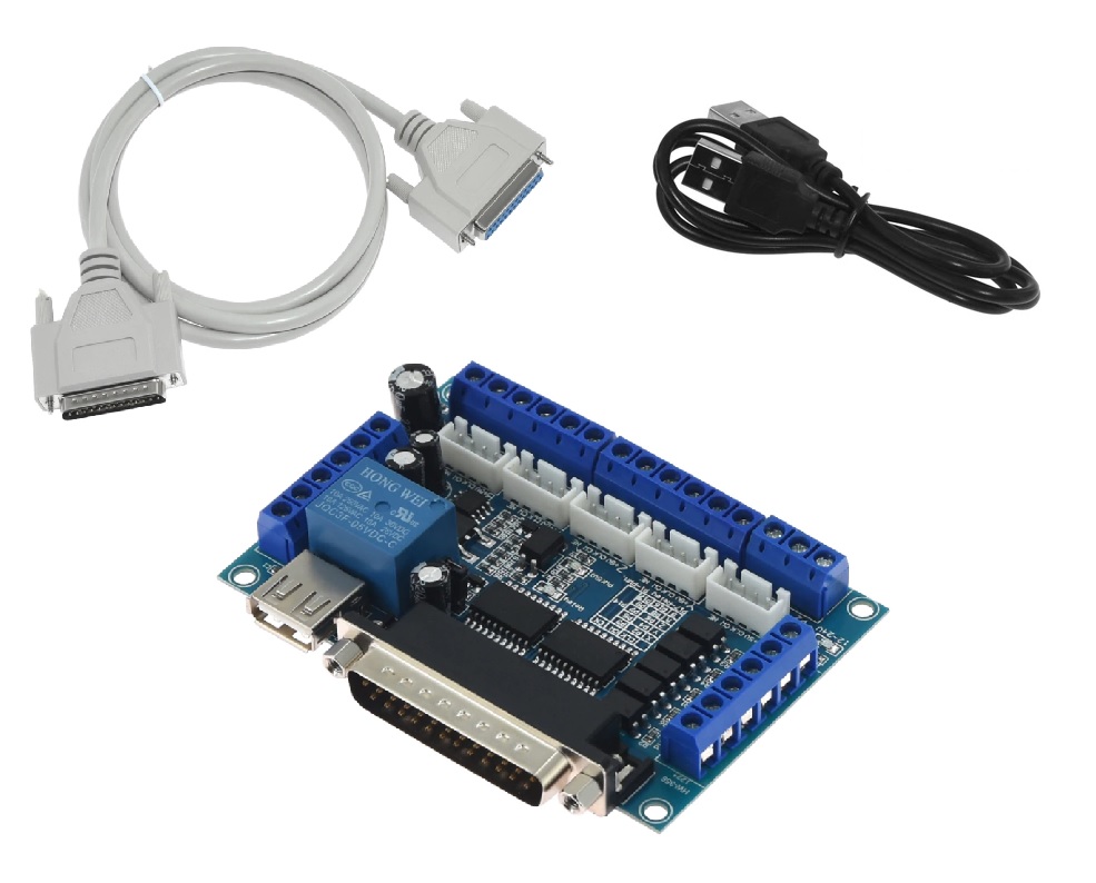 Upgraded 5 Axis CNC Interface Adapter Breakout Board for Stepper Motor Driver Mach3 + USB Cable